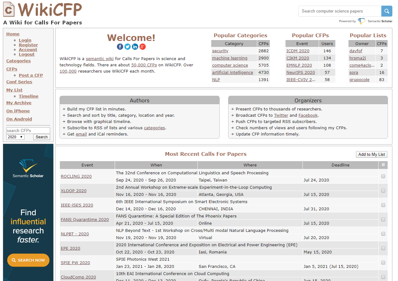 위에서 말한 학회들이 언제, 어디서 열리는지 혹은 논문 제출은 언제까지인지 찾아보기 위해서는 직접 해당 학회의 사이트를 들어가 확인하는 방법이 있습니다. 하지만 그렇다면 많은 시간과 노력이 필요할지도 모릅니다.